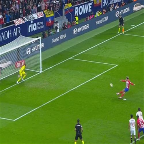فيديو... جريزمان يسقط ويضيع ركلة جزاء أمام إشبيلية