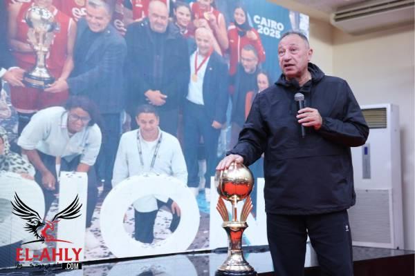 واختتم الكابتن الخطيب كلمته بتوجيه الشكر إلى الكابتن أحمد حسن رئيس نادي سبورتنج، مؤكدًا أنهم شركاء في الإنجاز؛ من أجل رفع قيمة اسم مصر، ووجّه الشكر أيضًا إلى اللجنة المنظمة للبطولة برئاسة محمد الجارحي، عضو مجلس الإدارة، على التنظيم المميز الذي عكس الصورة الحضارية للنادي الأهلي.