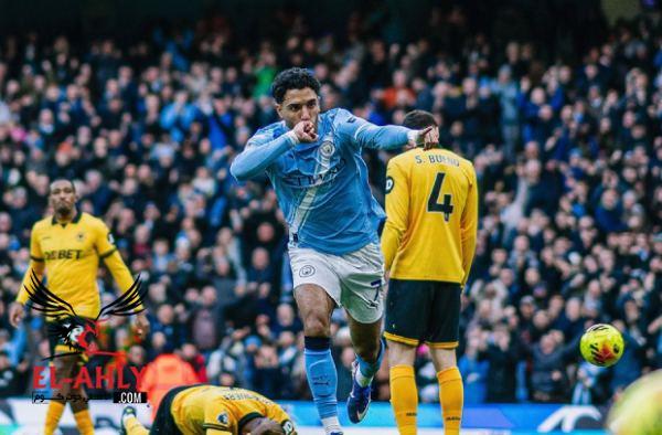مرموش يفتتح التسجيل لمانشستر سيتي أمام وولفرهامبتون