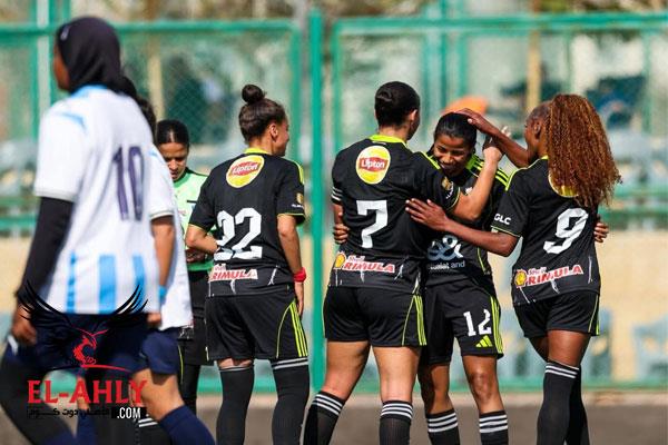 حقق الفريق الأول لكرة القدم سيدات بالنادي الأهلي فوزًا كبيرًا على نظيره بيراميدز بنتيجة 12-0، في المباراة التي جمعت بين الفريقين اليوم على ملعب الأهلي بالقاهرة الجديدة، ضمن منافسات الجولة السابعة والعشرين من بطولة الدوري.وجاءت أهداف الفريق بتوقيع نور يوسف، التي نجحت في تسجيل خمسة أهداف، وهدف لكل من هنا عثمان وإيمان حسن ونادين غازي وأشرقت عادل وميا داردن وبريندا إيبكا ونادين محمد.بهذا النتيجة، رفع الأهلي رصيده إلى 74 نقطة، جمعها من الفوز في 24 مباراة والتعادل في مباراتين فيما تعرض لهزيمة واحدة، مسجلًا 138 هدفًا، بينما استقبلت شباكه 8 أهداف فقط خلال مشواره بالمسابقة.وبدأ الأهلي المباراة بتشكيل مكون من: إسراء السقا ونورا خالد وإيمان حسن ورودينا عبد الرسول وأسماء علي ولولو نصر وهنا عثمان ونور يوسف وأشرقت عادل وميا داردن ونادين غازي. وعلى مقاعد البدلاء كل من: عزة الفولي وثريا أشرف وألكسندرا جورجيڤتش وكاميليا الديب ونادين محمد وملك سامح وحبيبة عصام وبريندا إيبكا وسارة خالد.