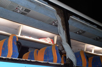 وقال المصدر أن الفريق عاد الى القاهرة في حراسة رجال الأمن قبل أن يفاجئوا بوابل من الحجارة يتم القاءه على الحافلة من جميع الاتجاهات حتى تهشمت تماماً.