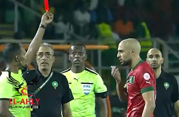 حقق المنتخب الجنوب إفريقي الفوز على منتخب المغرب بهدفين مقابل لا شئ في دور ال 16 من بطولة كأس الأمم الإفريقية وصعد إلى دور ربع النهائي.وتلقى لاعب المنتخب المغربي سفيان أمرابط بطاقة صفراء ثانية وكارت أحمر بعد منع هجمة مرتدة لمنتخب جنوب إفريقيا في الجقيقة 93 من زمن أحداث اللقاء.واستدعى حكم الفار حكم المباراة لمراجعة اللقطة وظن سفيان أمرابط أن الحكم سوف يلغي الإنذار الثاني والكارت الأحمر وأنه سوف يعود إلى أرض الملعب مرة أخرى.وعاد حكم اللقاء إلى أرض الملعب وبالفعل ألغى الإنذار الثاني للاعب منتخب المغرب سفيان أمرابط وأشهر له الكارت الأحمر بشكل مباشر.شاهد لقطة طرد سفيان أمرابط